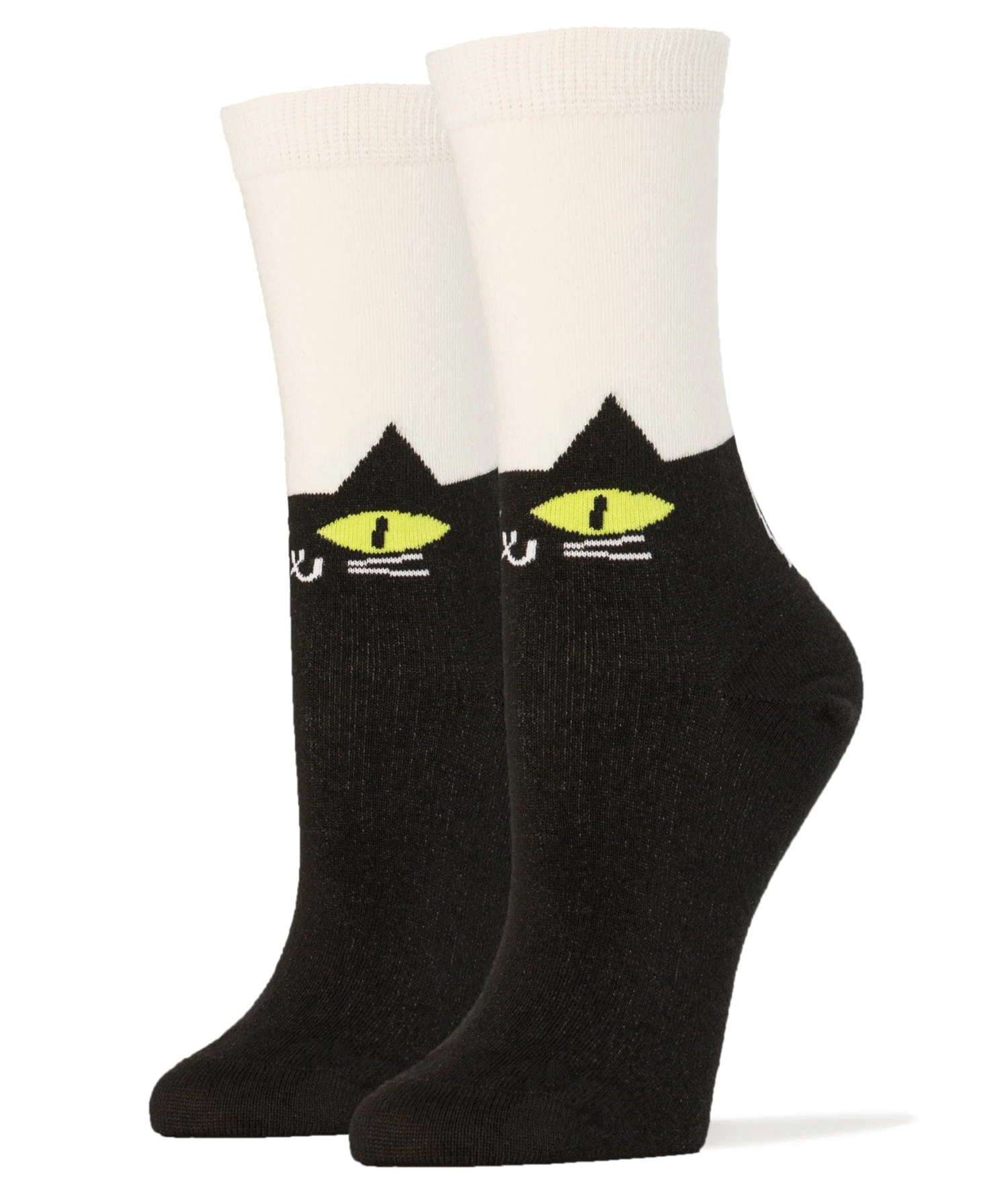 This pair of mid-calf crew length novelty socks come in one size that fits most women’s feet. Made of 65% Combed Cotton, 32% Nylon, 3% Spandex.