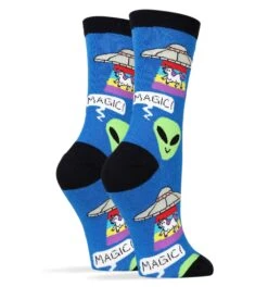 This pair of mid-calf crew length novelty socks come in one size that fits most women’s feet. Made of 65% Combed Cotton, 32% Nylon, 3% Spandex. We have the same design also available in a larger men’s size which you can find here: Men’s Wanna Bone Socks